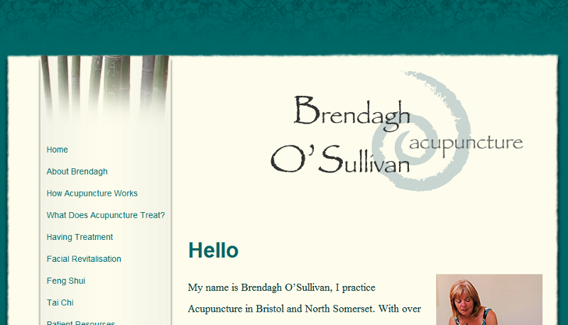 Brendagh O'Sullivan asked Ben to create a site to promote her work (predominently acupuncture) and allow her to post resources for patients.